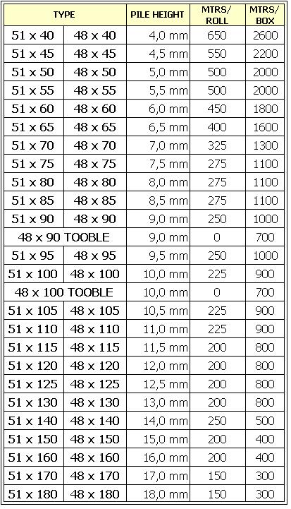 PACKING LIST FOR 48 & 51 TYPES